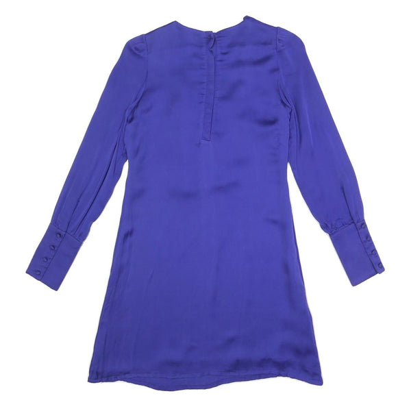 REISS Womens Blue Silk Day Dress V-Neck Long Sleeve UK 6 Elegant Ruffle Detail