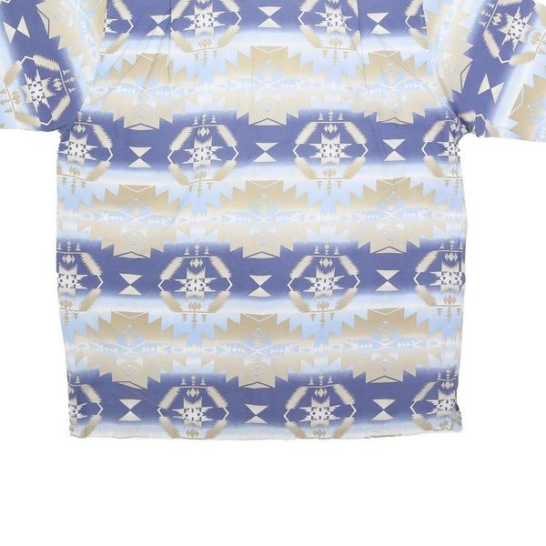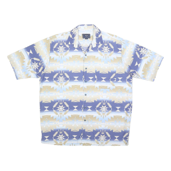 ROPER Mens Blue & Beige Pattern Shirt M Short Sleeve Cotton Casual