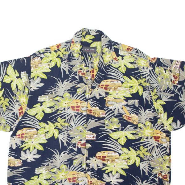 ROSS RIVER Mens Shirt Blue Viscose Crazy Pattern XL