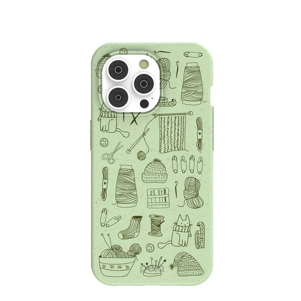 Sage green knit nook iphone 14 pro case