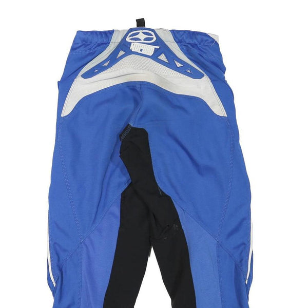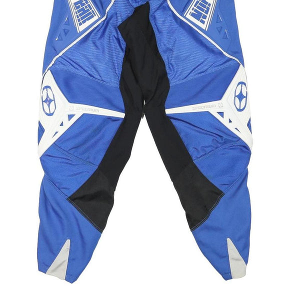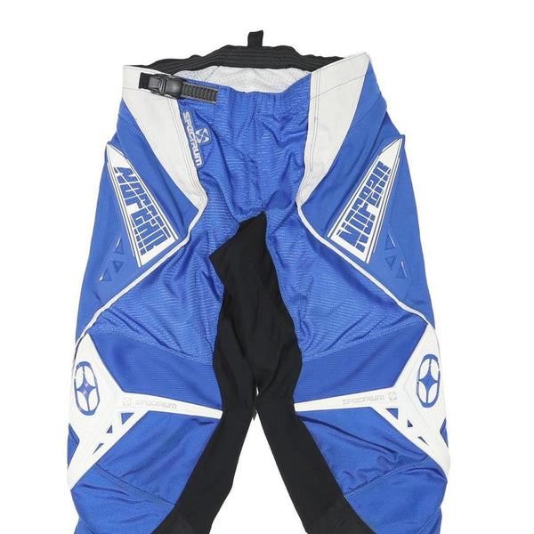 These SPECTRUM trousers feature a vibrant blue colour accented with white and black panel detailing. The design includes bold white printed branding and geometric graphics along the side panels and rear, adding a sporty, dynamic look. The fit is relaxed, offering comfort and freedom of movement.