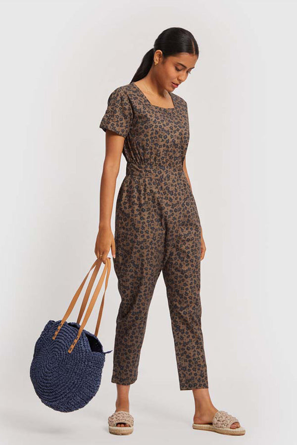 This is our take on the traditional jumpsuit. We've added a pretty half lapel detail in a chic animal print to elevate your everyday.