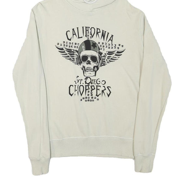 ST DIEGO Womens Cream California Choppers Cotton Blend Hoodie M Skull Print