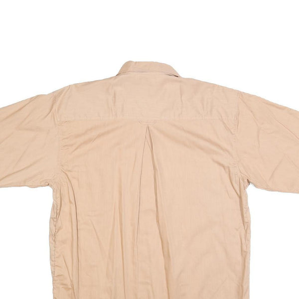 STANFORD Mens Beige Cotton Short Sleeve Shirt L Button Pocket Casual Summer