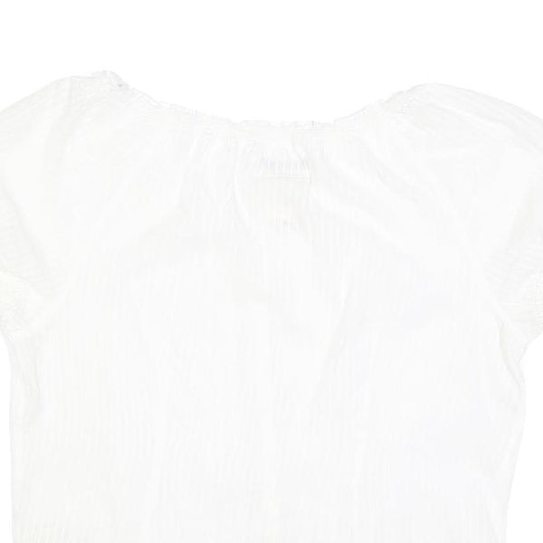 SUPERDRY Womens White Bardot Top Short Sleeve Button Neck Plain L Cotton Blend