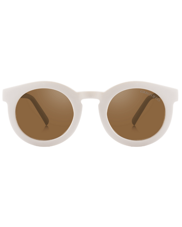 Grech&Co sunnies are designed in Europe and made in China. Lenses: TAC Polarized Lenses. Frame: Flexible Frame (BPA Free, Non Toxic, Eco Friendly), TPEE is an eco-friendly thermoplastic in more ways than one. It is BPA free, meaning no toxic chemicals come into contact with our children, ourselves, or the environment. It consumes less energy than other materials do in the production phase, which leaves a better footprint on our environment. It also is recyclable. It contains no nasty chemicals and is water-resistant and much more durable than regular plastics, much like silicone, making it more sustainable as well.