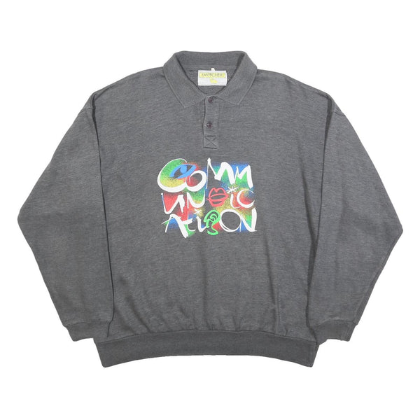 SWITCHER Mens Grey Cotton Blend Sweatshirt M Polo Collar Graphic Print Casual