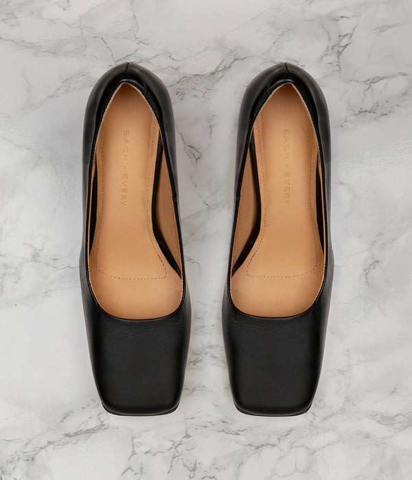 Available in either super soft full-grain leather or embossed snake leather, the spacious square-toe box is comfortable enough for all-day wear while the chunky trapeze block heel adds the perfect amount of stability, support, and lift on long days