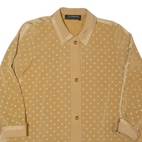 TH BRAUN Womens Shirt Beige 90s Polka Dot Long Sleeve L