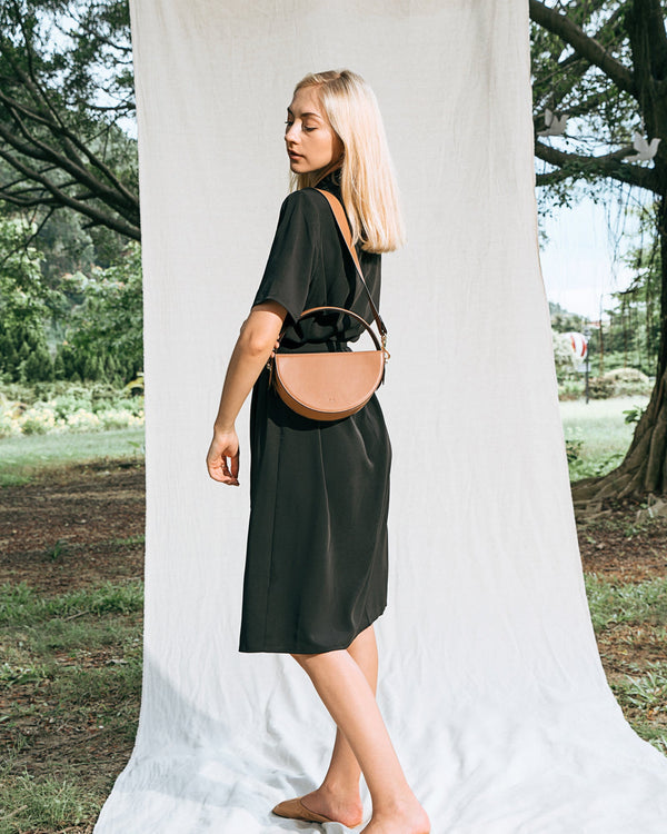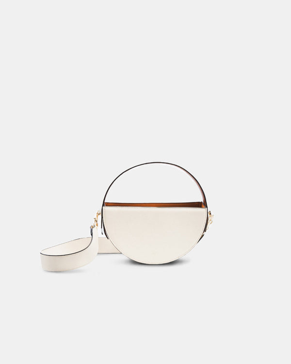 An elegant mini bag to hold all your essentials, The O.N.E. signature bag features a round hand bag with detachable 4cm wide shoulder straps for two way styling. The handle position can be adjusted up to 180 degrees to convert the bag to a semi-circle shaped bag to fit a variety of styles.