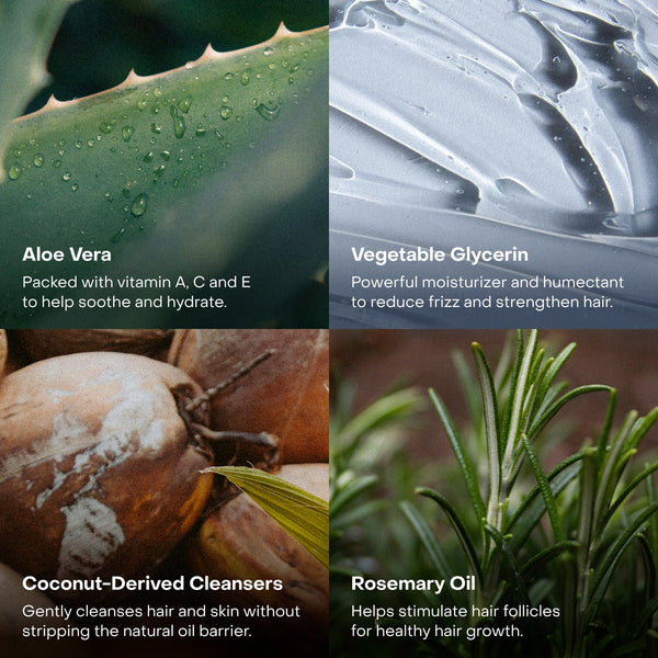 Glycerin, Sodium Lauroyl Glutamate, Aloe Barbadensis (Aloe Vera) Leaf Juice, Sodium Cocoyl Isethionate, Glyceryl Caprylate/Caprate, Propanediol, Polyglyceryl-3 Betainate Acetate, Citrus Aurantium Dulcis (Orange) Peel Oil, Limonene, Aspergillus Ferment, Panthenol, Arginine, Mentha Piperita (Peppermint) Oil, Rosmarinus Officinalis (Rosemary) Leaf Oil, Citrus Aurantium Bergamia (Bergamot) Fruit Oil, Salvia Sclarea (Clary Sage) Oil, Potassium Sorbate, Sodium Benzoate, Citric Acid