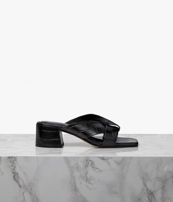 Composed with either a 50mm block or sculpted heel, two minimalist straps cross the upper further back than usual to both keep your foot secure and for increased support. Pair with your favorite warm-weather essentials for an instantly elevated look