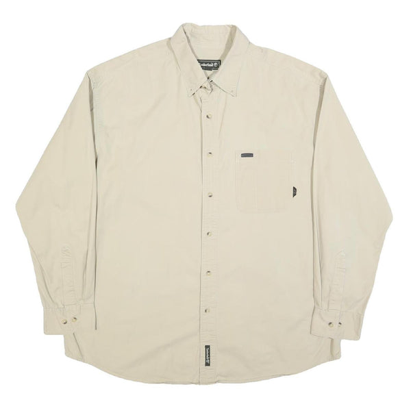 TIMBERLAND Mens Beige Cotton Long Sleeve Shirt XL Classic Button Down Pocket