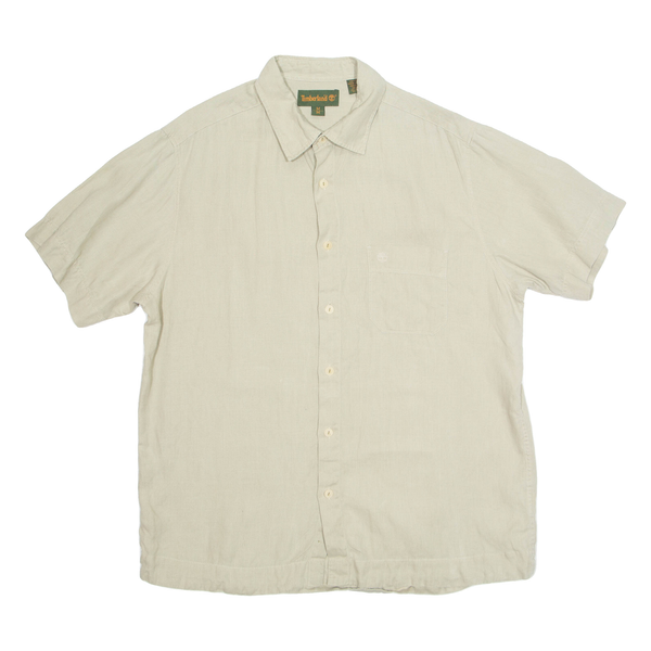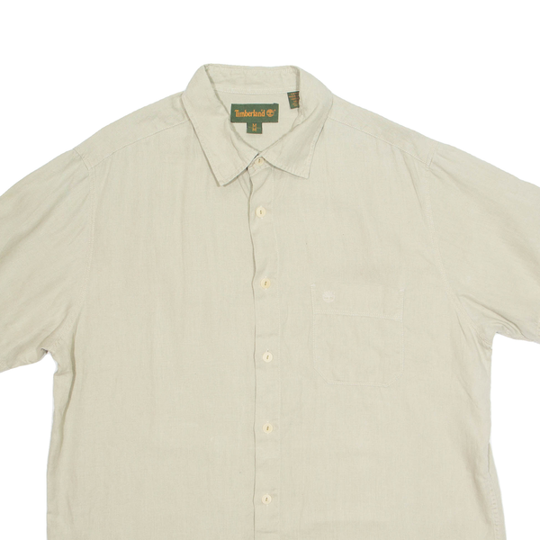 TIMBERLAND Mens Plain Shirt Beige Linen Short Sleeve M
