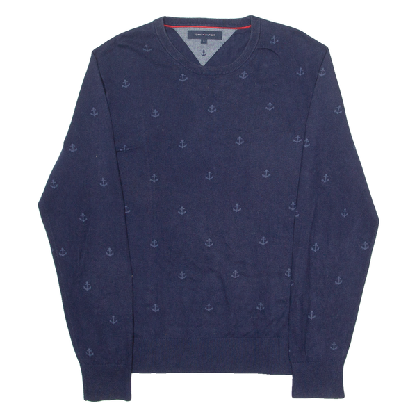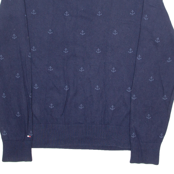 TOMMY HILFIGER Anchor Mens Patterned Jumper Blue Tight Knit L