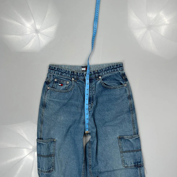 Tommy Hilfiger Carpenter Jeans, fit a 29″ Waist and 29″ inseam.