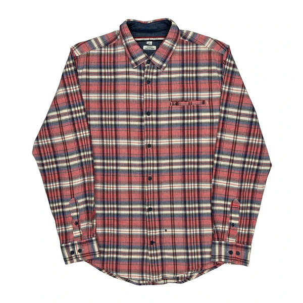 Red, Blue, And White Checked Pattern Shirt With A Chest Pocket