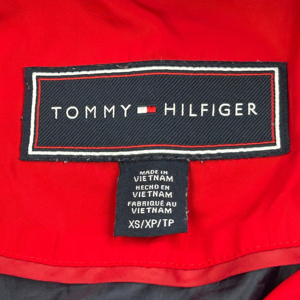 Red Windbreaker With Navy And White Stripes, Hooded, Zipper Closure.