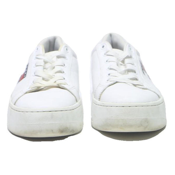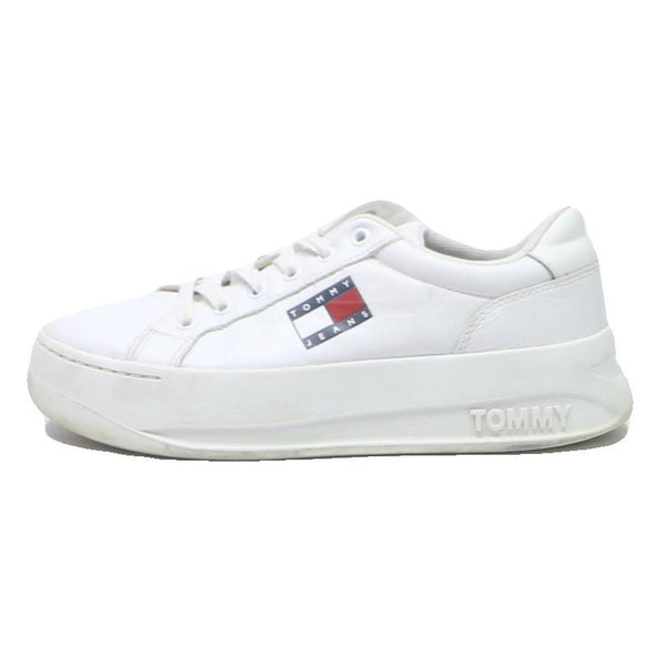 TOMMY HILFIGER Leather Womens Platform Trainers White UK 4 Casual Fashion