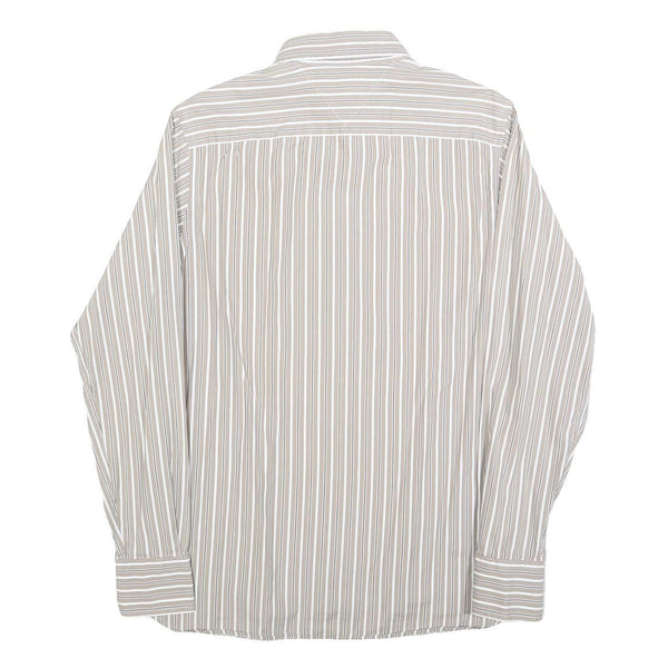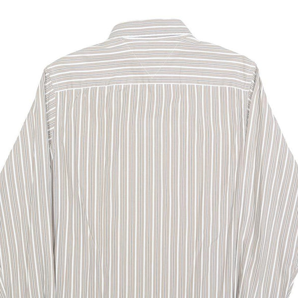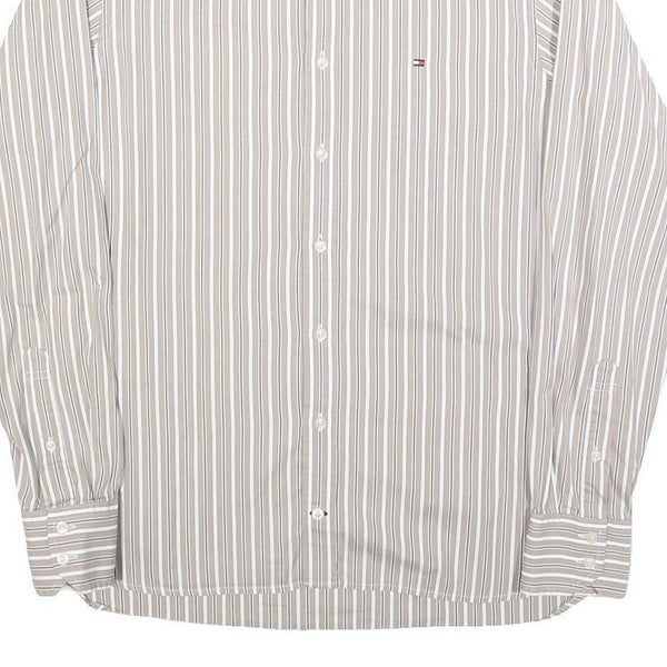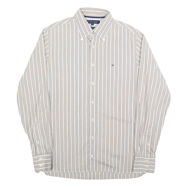 TOMMY HILFIGER Mens Beige & White Stripe Button-Down Shirt S Classic Cotton