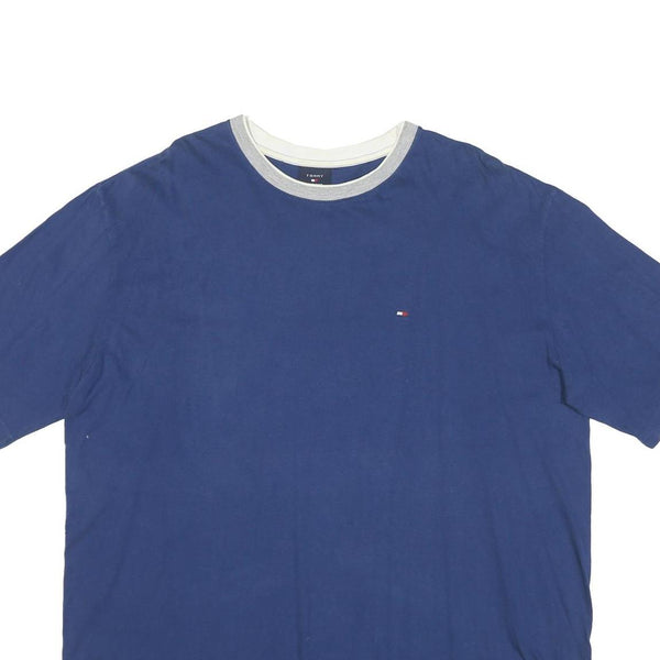 TOMMY HILFIGER Mens Blue Crew Neck T-Shirt XL Cotton Blend Casual Short Sleeve