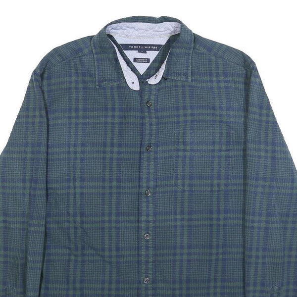 TOMMY HILFIGER Mens Blue Green Checked Shirt M Cotton Long Sleeve Casual