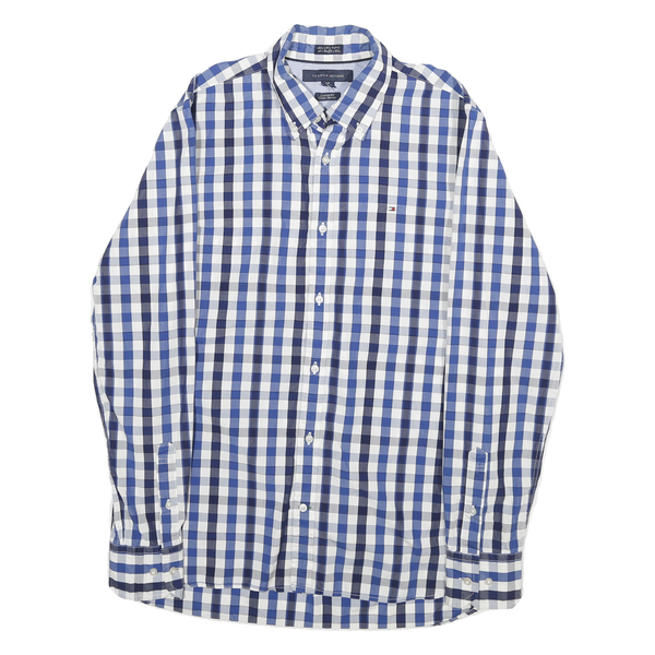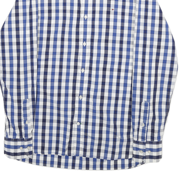 TOMMY HILFIGER Mens Blue & White Check Shirt S Button-Down Collar Long Sleeve
