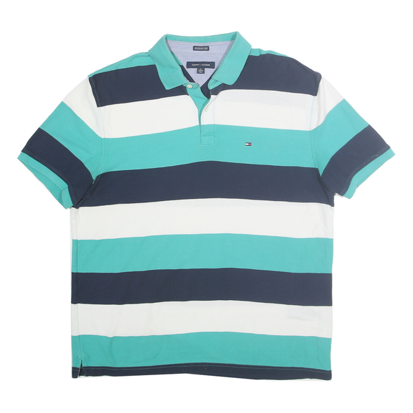 TOMMY HILFIGER Mens Blue & White Striped Polo Shirt XL Cotton Blend Casual