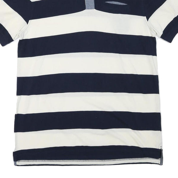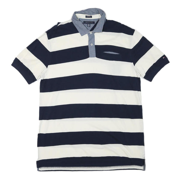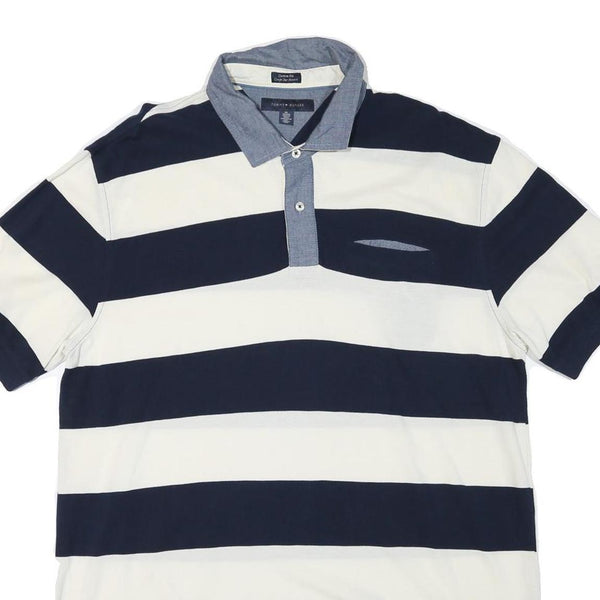 TOMMY HILFIGER Mens Blue & White Striped Short Sleeve Polo Shirt XL Cotton Blend