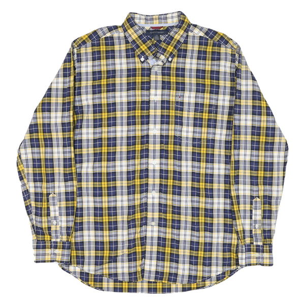 TOMMY HILFIGER Mens Blue & Yellow Check Shirt L Button Down Collar Long Sleeve