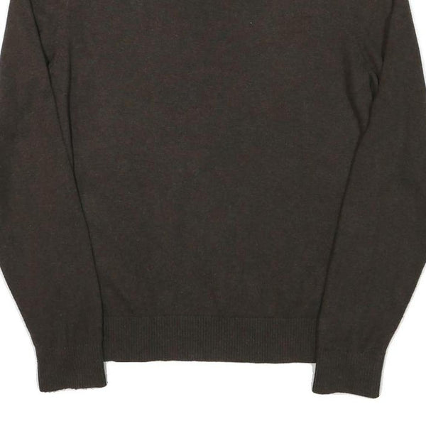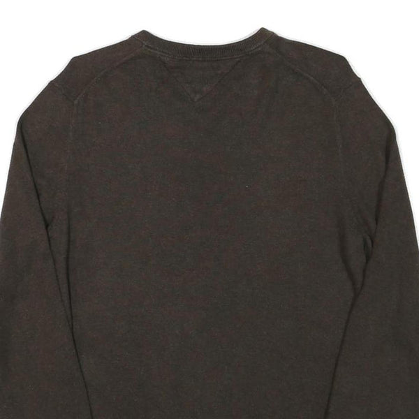 TOMMY HILFIGER Mens Brown Plain Cotton Blend Pullover V-Neck Jumper S