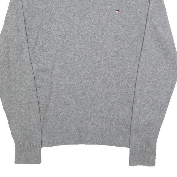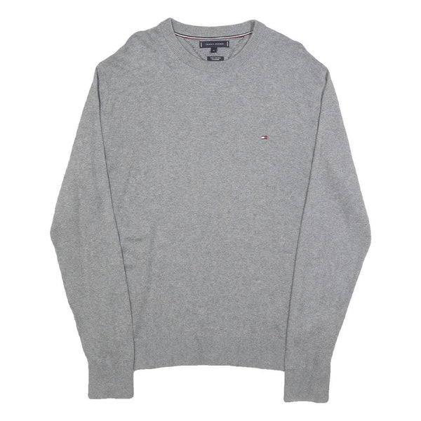 TOMMY HILFIGER Mens Grey Cotton Blend Plain Crew Neck Basic Knit Jumper L Casual