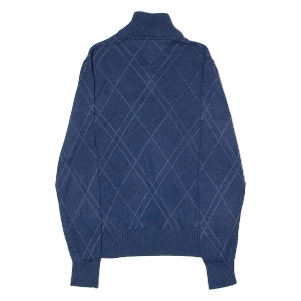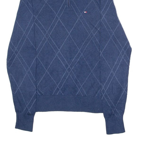 TOMMY HILFIGER Mens Jumper Blue Diamond 1/4 Zip Tight Knit S