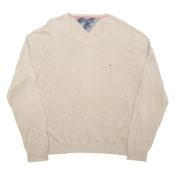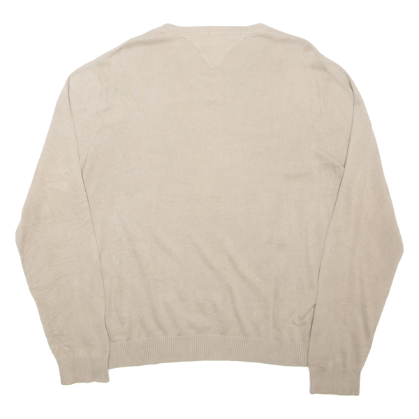 TOMMY HILFIGER Mens Jumper Brown V-Neck Tight Knit XL