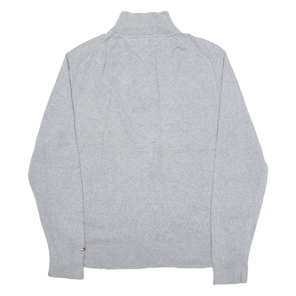 TOMMY HILFIGER Mens Jumper Grey 1/4 Zip Tight Knit L