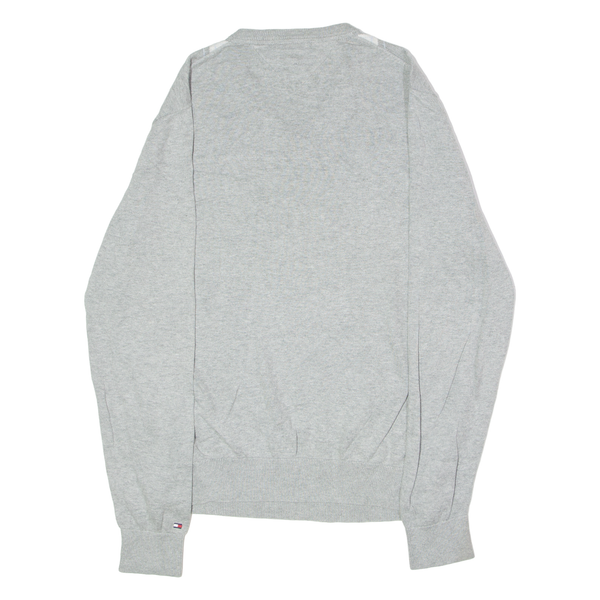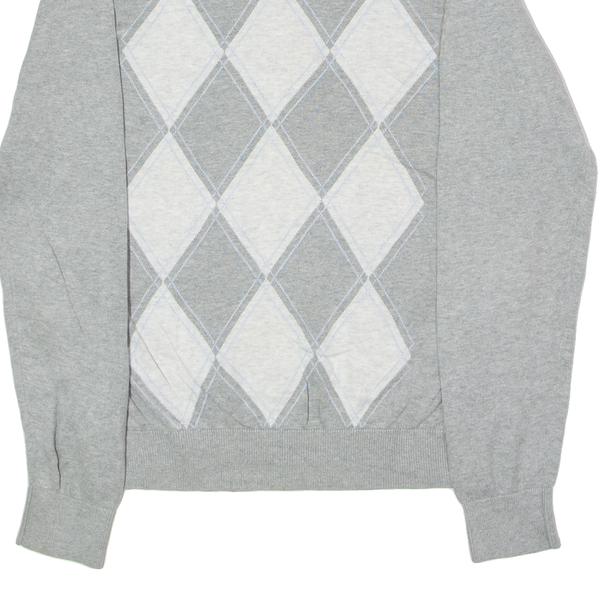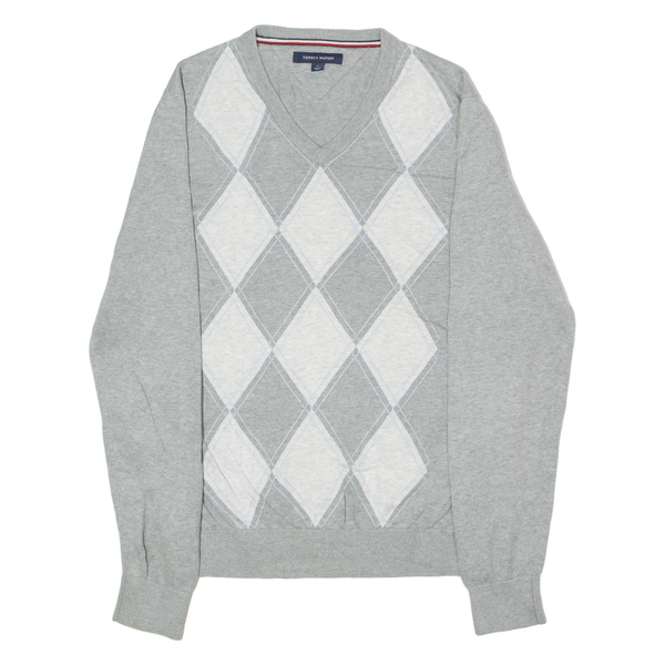 TOMMY HILFIGER Mens Jumper Grey Argyle V-Neck Tight Knit M
