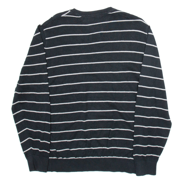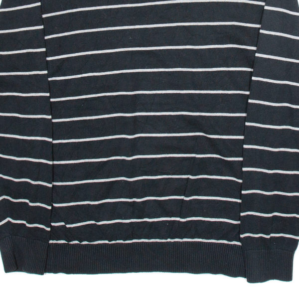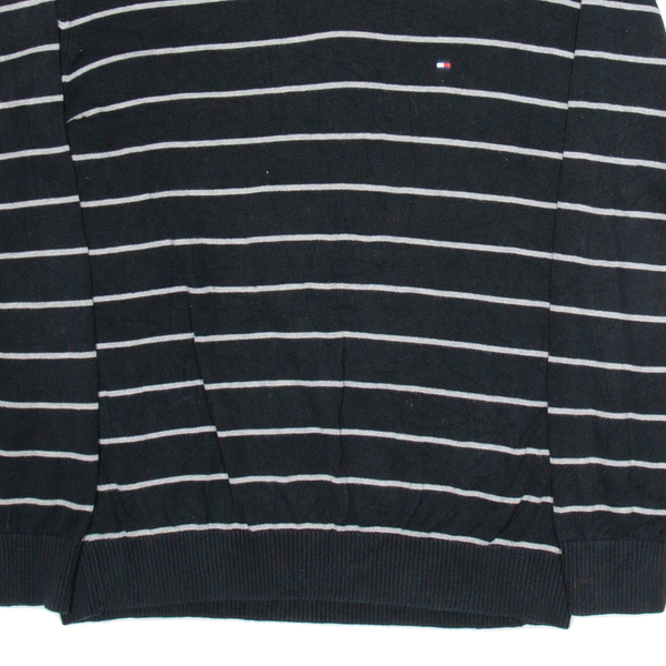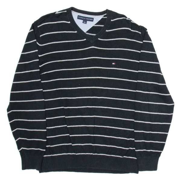 TOMMY HILFIGER Mens Patterned Jumper Black Striped V-Neck Tight Knit M