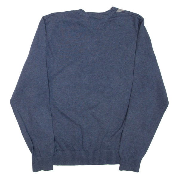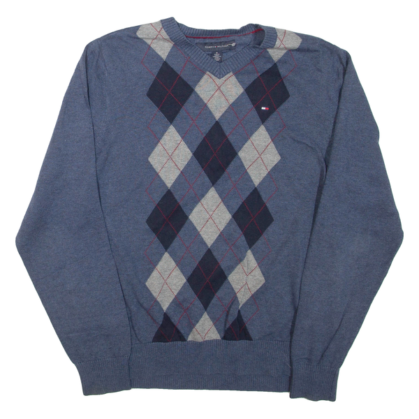 TOMMY HILFIGER Mens Patterned Jumper Blue Argyle V-Neck Tight Knit M