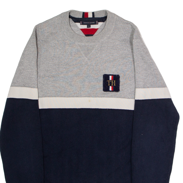 TOMMY HILFIGER Mens Patterned Jumper Blue Crew Neck Tight Knit Wool S