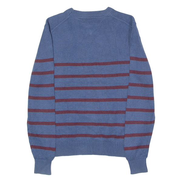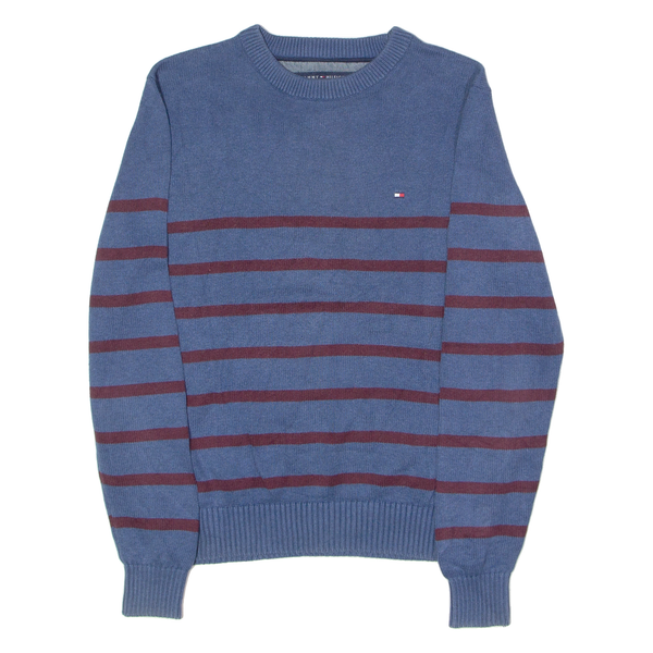 TOMMY HILFIGER Mens Patterned Jumper Blue Striped Crew Neck Tight Knit XS
