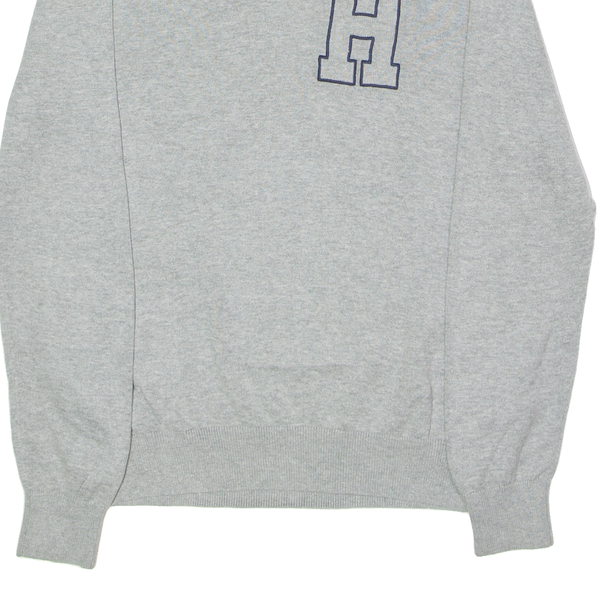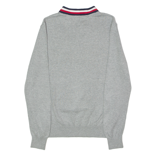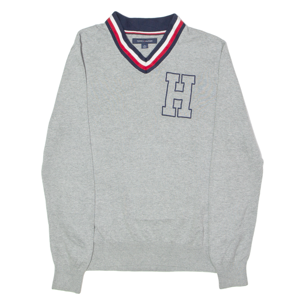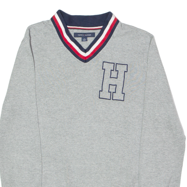 TOMMY HILFIGER Mens Patterned Jumper Grey Striped V-Neck Tight Knit XS