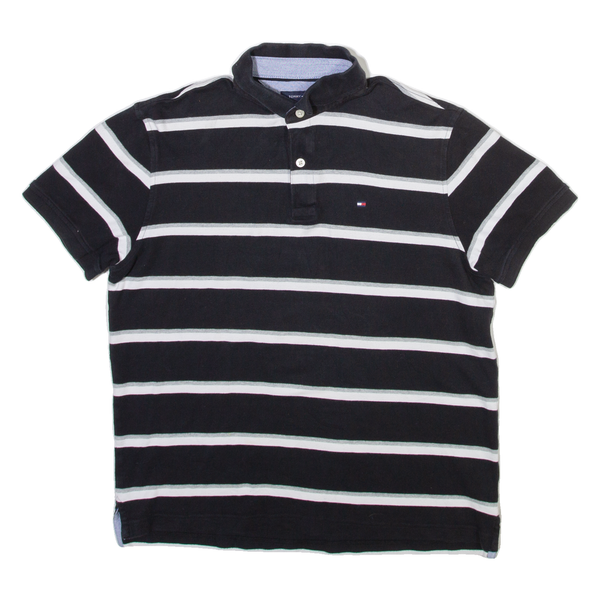 TOMMY HILFIGER Mens Polo Shirt Black Striped M