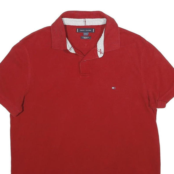 TOMMY HILFIGER Mens Red Short Sleeve Plain M Cotton Polo Shirt Classic Fit