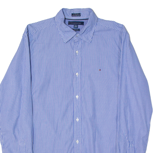 TOMMY HILFIGER Mens Shirt Blue 90s Striped Long Sleeve M