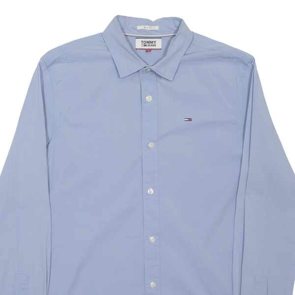 TOMMY HILFIGER Slim Fit Mens Plain Shirt Blue Long Sleeve S