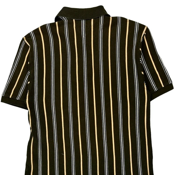 Green, Yellow, And Black Striped Polo Shirt With Logo On Chest