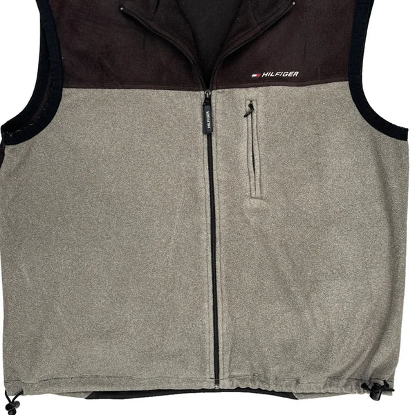 Tommy Hilfiger Fleece Vest, Gray And Brown, Zippered Pocket