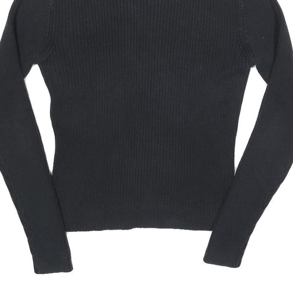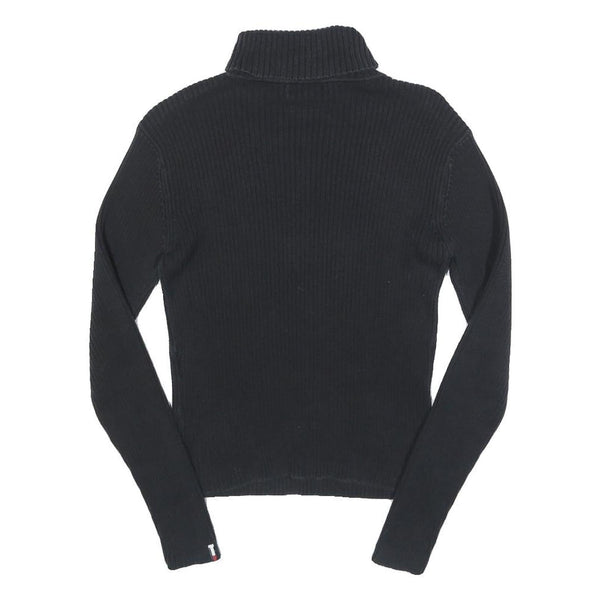 TOMMY HILFIGER Womens Black Plain Roll Neck Basic Knit Jumper M Cotton Knitwear
