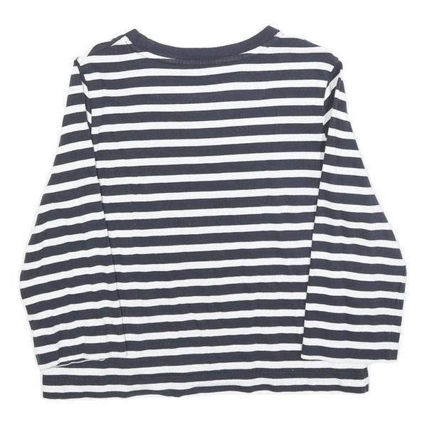 TOMMY HILFIGER Womens Black & White Striped Crew Neck S Sweatshirt Logo Print