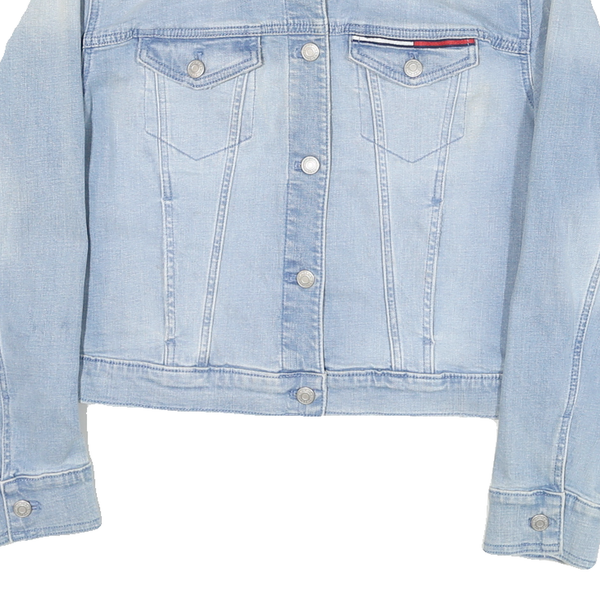 TOMMY HILFIGER Womens Blue Denim Button Jacket M Cotton Blend Colourblock Casual